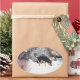 Cette image originale de Noël est un tableau d’un très mignon petit chien de race mixte noir et bronzé, il reniflait et gratte l’épaisse couche de neige fraîchement tombée qu’il vient de découvrir pour la première fois dans le jardin. Ce petit chien s’appelle Eddie, c’est un berger allemand de race croisée et il profite du froid dans son jardin d’hiver. Dans l'arrière - plan de cette image festive, vous pouvez voir un petit gnome de jardin gris tranquillement assis et lisant son livre sur le côté du petit étang gelé couvert de neige. Il y a aussi beaucoup d’arbustes de jardin enneigés et un ancien hangar en bois dans le jardin d’Eddie, tout cela ajoute de l’intérêt à ce joli autocollant festif de la scène de neige de Noël.