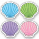 L'illustration de Four pastel colorful seashells. This pack of seashells four different beautiful colors which are blue, pink, green and violet. This design is a good gift idea for nature lovers, ocean lovers, seafood lovers and shell lovers.
