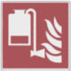 Unité applicatrice de mousse et icône de flamme sur arrière - plan rouge.