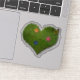 Belle illustration romantique : pelouse en forme de coeur avec fleurs et papillon sur un arrière - plan grungy vert.