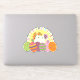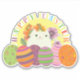 Beau, chat blanc caricaturé et oeufs colorés Joyeux autocollant de Pâques!