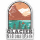 Design vectoriel de Glacier Park. Le parc est une zone sauvage située dans les Rocheuses du Montana, avec des pics et des vallées sculptés par des glaciers qui s'étendent jusqu'à la frontière canadienne.
