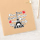 Illustration de design de texte parisien avec tour Eiffel et décoration de coeurs rouges