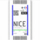 Conception d'un autocollant basé sur une carte d'embarquement pour l'aéroport Nice Côte d'Azur, France.