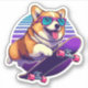 Un corgi lunettes de soleil géantes cool est capturé en mi-action, en équilibre habilement sur un skateboard. La langue du chien se luit sans souci, dégageant un air d'amusement et d'excitation. années 80, synthwave,