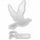 Sticker dans une colombe et le mot paix dans un dégradé argenté, effet métallique