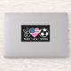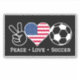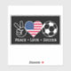 Ce sticker vinyle est parfait pour un fan de football américain. Le design comprend un signe de main de paix, un drapeau américain en forme de coeur et un ballon de football avec les mots "Peace Love Soccer".