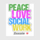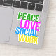 Joli autocollant de travailleur social dans des couleurs amusantes et vives de néon vert, rose, bleu et jaune pour quelqu'un qui aide les autres personnes dans le besoin. Peace Love Social Work.