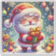 Sticker Père Noël joyeux tenant un cadeau dans un cadre fe