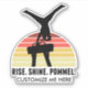 Cet autocollant de gymnastique masculine cool présente une gymnastique masculine sur un pied à main sur un cheval pommel devant un beau coucher de soleil. La citation drôle dit RISE SHINE POMMEL. Customisez avec une salle de sport ou un nom.