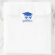 L'autocollant Masculine bleu et blanc commence par un bouchon de graduation ou un panneau de mortier dans deux nuances de bleu profond. Classe de et l'année de graduation est écrit ci-dessous dans une police audacieuse, d'inspiration athlétique bleue. La même police est utilisée dans le nom de famille du diplômé, mais une police de caractères de gros caractères est utilisée pour son prénom pour donner la personnalité de l'autocollant de graduation. Utilisez cet autocollant de graduation bleu et blanc pour sceller les annonces de graduation et les invitations à la fête de graduation.