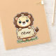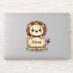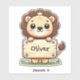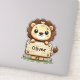 Cet adorable autocollant personnalisé présente un mignon lion géant portant une pancarte portant le nom de votre petit.