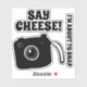 Trois autocollants amusants pour ordinateur portable ou carnet pour le photographe. Cet ensemble comprend un appareil photo, un texte qui dit, "Je suis sur le point d'accrocher", et un texte qui dit, "Dis du fromage !" Ces autocollants sont parfaits pour tout ce que vous voulez y coller, Ils travaillent avec des bagages, des bouteilles d'eau, des cabines téléphoniques, des casques, des vélos, des skateboards, etc....
