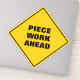 Drôle classique de losange jaune avertissement de route avertit de travail de pièce devant dans une police noire sans serif épaisse. Parfait pour quelqu'un qui travaille sur une ligne de production ou qui fait un travail répétitif.