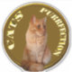 Dans une pièce d'or est représenté un chat gingembre avec les mots chats purrfection autour du chat