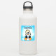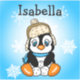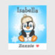 Un mignon manchot dessiné à la main avec des boules de neige et des flocons arrière - plan. Autocollants de nom personnalisés.
