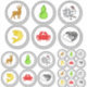 Feuille d'autocollant des composants de jeu de dés de crabe de crevettes de poisson. Cette feuille autocollante présente les motifs suivants : blanc coq rouge crevette jaune de poisson cerf vert gourde