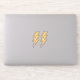 Sticker avec un éclair jaune avec des contours noirs et une texture usée et en détresse. Ensemble de deux autocollants