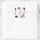 Cet autocollant à baby shower à impression de vache a un imprimé à ruban en chevron en rose enveloppé derrière la bannière donnant les informations de conservation sur la douche. Une minuscule vache se cache sur la droite, regardant les informations. Cette conception peut également être utilisée pour les marqueurs de cupcake.