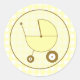 Un autocollant avec un chariot jaune clair à l'intérieur d'un cadre en forme de cercle. Jaune en vichy arrière - plan. Recherchez les articles correspondants tels que les invitations dans la section "Baby Shop" du Pink Schoolhouse Store.