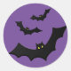 Autocollant rond en violet avec chauve-souris Halloween. Customisez cet objet ou achetez tel quel. com.