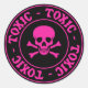 Toxique - lettrage rose chaud avec crâne et os croisés.