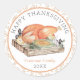 Célébrez Thanksgiving dans un style délicieux avec cet autocollant rond festif avec une illustration de dinde d'aquarelle, une bordure molle de feuille d'automne, et éditable nom de famille et année. Parfait pour sceller des enveloppes, des faveurs de fête, des boîtes à tarte ou des toppers de cupcake pour votre rassemblement de Thanksgiving.