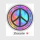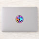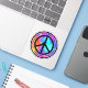 Autocollant hippie - signe de paix avec le texte environnant sur un arrière - plan multicolore.