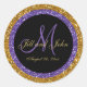 Versatile, monogrammed personnalisé élégant joint enveloppe de mariage avec un cercle de parties scintillant violet et or chatoyant, police de script élégant pour le nom de famille initial et la conception de mariée et mariée sur un arrière - plan noir. Ces autocollants monogrammes personnalisés peuvent être utilisés pour enregistrer les dates, les invitations de mariage et les cartes de remerciements. Aussi de grandes utilisations comme moderne, contemporaine glam mariage stickers faveur. Parties scintillant est un effet photo imprimé. Autres couleurs disponibles dans notre boutique à l'adresse www.zazzle.com/monogramgallery