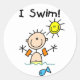 Un personnage de bâton de garçon nage avec le poisson et le soleil sourit sur lui sur ce personnage de bâton coloré et mignon garçon Je Sac de bain qui est personnalisable pour vous pouvez ajouter un nom