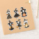 Embrassez l'esprit d'Halloween avec cette charmante série de 6 autocollants, chacun présentant une adorable petite sorcière dans diverses poses fantaisistes. Parfait pour ajouter une touche de magie à votre papeterie, artisanat ou faveurs de fête. Ces jolies sorcières vectorielles sont ornées de robes en forme de citrouille, rehaussées d'arabesques complexes en or noir, blanc et glitterie, ce qui en fait un joli complément à toute collection Halloween.