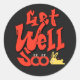 Un autocollant dynamique et ludique conçu pour égayer la journée de quelqu'un quand il se sent sous le temps. L'autocollant comporte les mots "Get Well Bientôt" en caractères gras et oranges sur un arrière - plan circulaire noir, accompagné d'un mignon lapin de dessin animé jaune et d'une pieuvre rouge aux grands yeux. Le design est sûr d'apporter un sourire au visage du destinataire et de fournir un geste de soutien réfléchi pendant leur rétablissement.