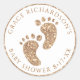 Faites scintiller votre baby shower avec cet autocollant glamour à l'aspect parties scintillant or avec des empreintes de bébé sucrées. Parfait pour sceller des sacs, des boîtes ou des enveloppes, cet autocollant personnalisé ajoute une touche d'élégance et de charme à votre célébration. Customisez avec le nom et la date de la douche de la maman pour une touche finale polie et mémorable.