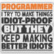 Drôle Programmeur Dit "Programmeur J'Essaie De Faire Des Choses Idiot Preuve Mais Ils Continuent À Faire De Meilleurs Idiots". Prenez cette conception de programmeur amusant comme un cadeau amusant pour une maman, un papa ou un ami génial.