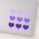 Sticker avec neuf coeurs dans trois tons de violet, du noir à la lumière. Ces autocollants amusants découpés sont parfaits pour le scrapbooking, la journalisation, les cadeaux et la décoration.