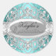 Sticker Quinceanera en argent et Turquoise Damask