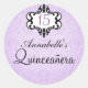 Cet élégant Sticker Quinceañera personnalisable présente un design mauve damassé. Customisez-le en ajoutant vos détails dans la police de votre choix !