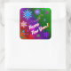 sticker carré avec une image de jolies flocons de neige bleus, fuchsia et verte sur un arc-en-ciel arrière - plan de lumières de vacances et un sentiment de vacances blanc. Voir invitation carré, confettis et papier d'emballage correspondants. Voir la collection entière de Stickers du Nouvel An sous la catégorie CARDS & STICKERS dans la section VACANCES.