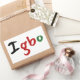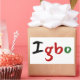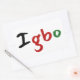 Un joli autocollant, cet article présente "Igbo" aux couleurs colorées noir, vert et rouge. L'arrière - plan est blanc mais peut être customisé comme votre costume. Choisissez parmi une variété de formes.