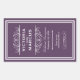 Parfaits pour les mariages de vignobles ou les faveurs de bouteilles de vin, ces élégants étiquettes de style vintage et fleuri disposent d'un monogramme de mariage personnalisé avec les noms de mariée et mariée, la date mariage, le type de vin, et message de remerciement qui peut être complètement personnalisé. Couleurs design violet et blanc de l'aubergine foncée.