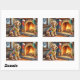 Sticker Rectangulaire Airedale Terrier Fireplace Christmas Lights