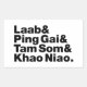 Plats laotiens : Laab & Ping Gai & Tam Som & Khao Niao.