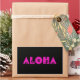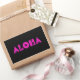 Aloha en police de fleur rose vif contre un arrière - plan qui peut être changé. Vous pouvez ajouter une photo de vos vacances à Hawaï si vous le souhaitez.