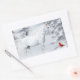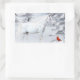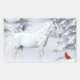 Cheval appaloosa tacheté léopard dans un arrière - plan hivernal et un oiseau cardinal Noël ou cheval amateurs autocollant rectangulaire
