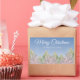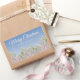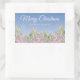 Aquarelle rose Arbres Forêt Artistique Joyeux Stickers de Noël. Aquarelle festive rose et vert arbres dans une forêt avec la neige et un joyeux souhait de Noël en écriture branchée. Customisez le texte.