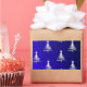Sticker Rectangulaire Arbres de Noël Argent sur Bleu Cobalt