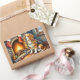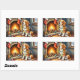 Sticker Rectangulaire Beagle Sitting by Fireplace with Christmas Lights