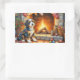 Sticker Rectangulaire Bernedoodle Fireplace with Christmas Lights