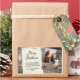 Bois rustique Vieux Script Joyeux Sticker Photo Famille de Noël. Une scène rustique avec bois, verdure et vieux papier avec un script sur le papier - customisez le texte et ajoutez votre photo.