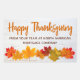 Cet élégant autocollant moderne d'entreprise Thanksgiving party comporte une belle ligne de feuilles d'automne sur un arrière - plan en bois blanc. Personnalisez avec vos informations d'entreprise sur le devant en orange et brun pour un complément de vacances classe aux cadeaux de vos clients ou des tartes gratuites de votre entreprise.